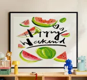 Rinnova il tuo spazio con il nostro meraviglioso poster “Happy Weekend” di Ekaterina Koroleva. Questo design giocoso e fresco, con allegria e frutta estiva, porta un tocco di energia e positività in ogni ambiente. Perfecto per la cucina, la sala da pranzo o anche come vivace decorazione per una camera da letto, questo art print cattura l’essenza di momenti spensierati e divertenti. Realizzato in un’elegante cornice di legno, è facile da appendere e rende il tuo spazio unico. La dimensione di 10 x 15 cm è ideale per piccole pareti o per creare una galleria di arte a casa. Sia che tu stia cercando un regalo originale o desideri semplicemente abbellire la tua casa, questo pezzo è una scelta perfetta!