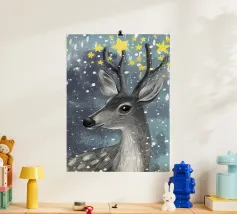Cucù! Uno scenario invernale con betulle e un cervo che gioca a nascondino nella foresta.