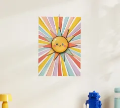 Bright, cheerful and full of energy: this smiling sun instantly brings a good mood to any room. With its colourful rays and friendly face, it is the perfect motif for children's rooms, playrooms or anyone who wants to enjoy a bit of sunshine every day. A design that radiates optimism, joy and warmth - ideal for little sunshine children and big dreamers.