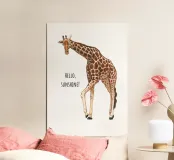 Ravvivate le vostre pareti con questa allegra opera d'arte di giraffa! Caratterizzata dalla dolce frase "Hello, Sunshine!", questa illustrazione giocosa è perfetta per le camere dei bambini, le camerette o per chiunque ami gli animali del safari. Un'opera d'arte da parete divertente ed edificante che dona calore e fascino a qualsiasi spazio.