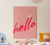 Ravvivate qualsiasi spazio con un saluto semplice e allegro. Questa stampa minimalista presenta la parola "ciao" in una fluida scrittura rossa con un dolce cuore bianco, il tutto su uno sfondo rosa tenue. Perfetta per ingressi, scrivanie o camerette.