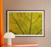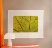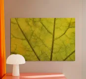 Questa opera d'arte mostra un'affascinante fotografia macro di una foglia autunnale, la cui struttura e il cui gioco di colori catturano la bellezza poetica della transitorietà. La superficie della foglia è attraversata da una complessa rete di venature finemente ramificate che ricordano l'architettura naturale - organica, ritmica e piena di carattere. Lo spettro cromatico spazia dal giallo intenso ai toni delicati del verde e alle calde sfumature del marrone, che si distribuiscono sulla foglia con dolci transizioni.