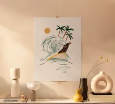 Scopri "Here Comes The Sun", una stampa in legno dal design unico che porta un tocco di freschezza e gioia a qualsiasi ambiente! Questa stampa, firmata dal talentuoso Florent Bodart, rappresenta un lupo stilizzato che tiene una tavola da surf, evocando un’atmosfera estiva e avventurosa. È perfetta per decorare la tua casa, la camera dei bambini, o un angolo dedicato alla creatività. Con dimensioni di 10 x 10 cm, si adatta bene a qualsiasi spazio. Stupisci i tuoi amici e portali in una giornata di sole ogni volta che entreranno nella tua stanza. Essendo un oggetto d’arte in legno, non solo hai un pezzo estetico, ma anche un valore durevole e sostenibile. Aggiungi un tocco scandinavo al tuo arredamento e trasforma ogni muro in una tela di emozioni.