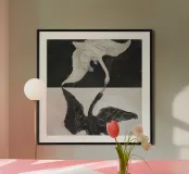 HILMA AF KLINT cigno in bianco e nero poster con telaio in legno