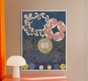 Immergetevi nell'incantevole mondo di Hilma af Klint con "Childhood, Group IV", un vibrante capolavoro della sua innovativa serie "The Ten Largest". Questo dipinto astratto è ricco di forme organiche, motivi simbolici e una ricca tavolozza di colori che riflettono il viaggio spirituale e la visione astratta pionieristica di af Klint. Delicati motivi floreali si intrecciano con linee vorticose ed elementi circolari, invitando gli spettatori a riflettere sui temi della crescita e della vita nascente. La nostra riproduzione digitale ad alta fedeltà, meticolosamente realizzata a 7000x5000 pixel e 300 dpi, cattura ogni dettaglio intricato e vivido.
