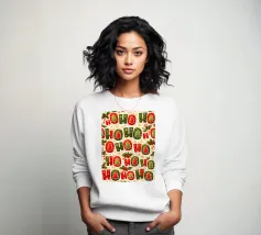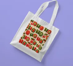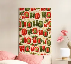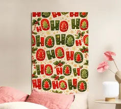 Playful “Ho Ho Ho” typography and iconic Christmas symbols come together in a vintage-inspired pattern full of energy and joy. Perfect for a punchy holiday statement.