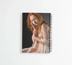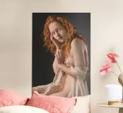 Uno scatto semi-nudo di una giovane donna dai capelli rossi in accappatoio