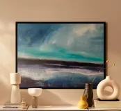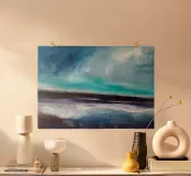 Questo paesaggio marino astratto cattura il movimento, la profondità e l'atmosfera dell'oceano in una forma moderna e senza tempo. Le strutture fluide e i colori sfumati ricordano l'acqua, il vento e la luce in continuo mutamento e trasmettono calma, vastità, nostalgia e libertà. L'immagine minimalista del mare crea un'atmosfera meditativa e si integra armoniosamente in spazi abitativi moderni, interni scandinavi o arredi minimalisti. Ideale per tutti coloro che amano l'arte astratta, i motivi marittimi e l'arte murale senza tempo.