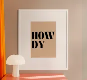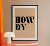 Salutate con questa stampa calda e accogliente. Caratterizzato da un carattere nero in grassetto su un morbido sfondo marrone chiaro e beige, questo disegno semplice ma elegante cattura il fascino disinvolto di un saluto amichevole. Perfetto per creare un'atmosfera rilassata e invitante in casa, in ufficio o come regalo per qualcuno che ama le atmosfere rustiche e accoglienti. Questa stampa è un mix perfetto di minimalismo e calore.