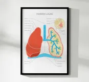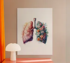 Una stampa artistica incorniciata di alta qualità che rappresenta i polmoni umani, perfetta per decorare uffici, studi medici o stanze dedicate alla salute. L'opera di Lidia Blomgren unisce arte e scienza, rendendola un elemento decorativo unico e educativo.