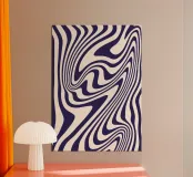 Un'ipnotica stampa ondulata blu e bianca che crea un'illusione ottica ipnotica, attirando lo sguardo con il suo motivo fluido e ondulato. Perfetta per gli amanti dei disegni audaci e ad alto contrasto, questa opera d'arte aggiunge un tocco dinamico e moderno a qualsiasi spazio. Che si tratti di decorazioni murali, moda o sfondi digitali, questa stampa è un must per gli appassionati di estetica trippy, retrò e astratta.