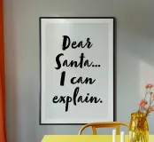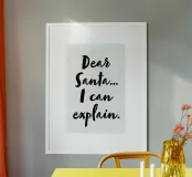 Cerchi un modo divertente per esprimere la tua personalità? Questa stampa artistica incorniciata in legno è la soluzione perfetta! Con la scritta "Dear Santa... I can explain.", porterà un tocco di umorismo e originalità a qualsiasi ambiente. Ideale per decorare la tua casa, l'ufficio o come regalo speciale. Ogni volta che qualcuno la vedrà, si porterà un sorriso!