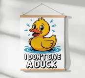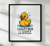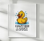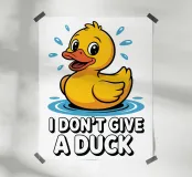 Un allegro anatroccolo giallo siede in una piccola pozza d'acqua, circondato da schizzi. Sotto, la scritta "I DON'T GIVE A DUCK".