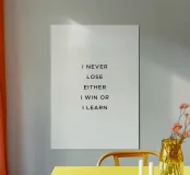 Non perdo mai, o vinco o imparo". poster con telaio in alluminio