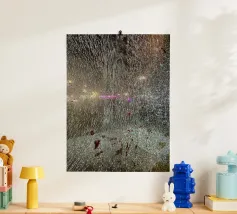Una lastra di vetro si frantumò in mille pezzi, creando una sorta di caleidoscopio con molti riflessi.