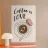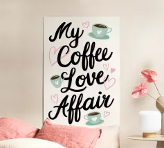Illustrazione piuttosto moderna di una tazza di caffè con una citazione tipografica