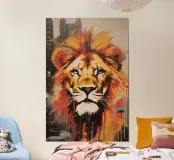 Un leone come raramente lo si vede: selvaggio, esperto, dinamico, urbano. Quest'opera combina l'energia colorata e cruda della street art con il simbolismo della forza e della saggezza regale. La tavolozza di colori espressivi - arancione, giallo, rosso - emerge dallo sfondo grigio della città. Un manifesto visivo tra il mito animale e la realtà delle grandi città, ispirato ai graffiti, alla pop art e alla pittura digitale. Pura presenza: questo quadro ruggisce senza essere rumoroso. Per tutti i leoni di città tra noi.