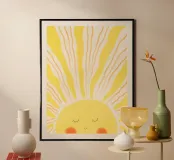Watercolor design with yellow sun