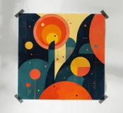 È necessaria una certa precisione, perché nell'immagine i simboli sono collocati in modo un po' impreciso l'uno rispetto all'altro. Una rappresentazione astratta, colorata e senza tempo.