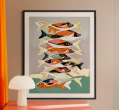 Vi presentiamo la nostra incantevole stampa fine art con un delizioso gruppo di sardine colorate eclettiche e stravaganti. Questa vibrante opera d'arte cattura l'essenza giocosa di questi affascinanti pesci, ognuno dei quali è ornato da una tavolozza unica di tenui colori pastello che danzano sulla tela. Le sardine, con le loro espressioni stravaganti e i loro disegni fantasiosi, portano un senso di gioia e di estrosità in ogni spazio.