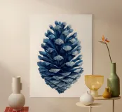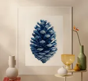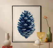 Un acquerello straordinariamente moderno di una pigna, resa in ricche tonalità indaco e ardesia fredda. Questo pezzo bilancia la texture naturale con un'audace semplicità, ideale per l'arredamento ispirato ai boschi, per gli interni moderni e rustici o per l'arte murale stagionale con un tocco fresco e minimalista.