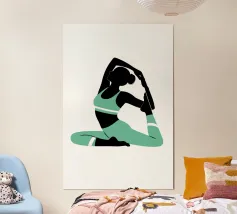 La silhouette di una donna seduta in meditazione con l'energia bianca che scorre intorno a lei. Il contrasto tra luce e buio riflette la consapevolezza e la chiarezza spirituale: perfetto per gli studi di yoga o per le case serene.