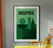 Questo moderno poster in stile Bauhaus porta una ventata di aria fresca in qualsiasi casa o ufficio grazie alla sua chiarezza geometrica e all'armoniosa combinazione di colori. L'attenzione si concentra sulla scritta ispiratrice "INSPIRE", che troneggia in un carattere morbido e moderno su una composizione di forme chiare in varie tonalità di verde. Lo stile minimalista e la tavolozza di colori pacati rendono questo design la scelta ideale per spazi di lavoro creativi, soggiorni moderni o spazi minimalisti in cui è necessario un accento calmo ma potente.