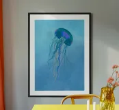 Scopri la bellezza dell'arte marina con la nostra stampa artistica in vetro con cornice di legno raffigurante una medusa. Perfetta per decorare il soggiorno, la camera da letto o qualsiasi ambiente che meriti un tocco di eleganza e serenità.