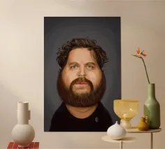 A humorous caricature illustration of the well-known American actor and producer; Joaquin Phoenix. One of a series of caricatures achieved for the Celebrity Sunday series, where a famous person is rendered within a day. The idea is to show them as if in a passport photo to have consistency.
