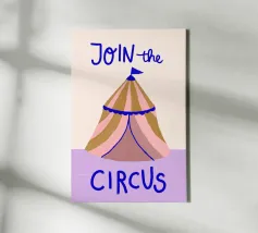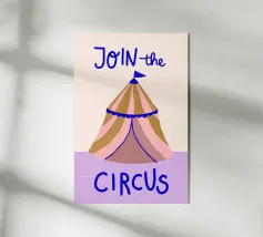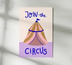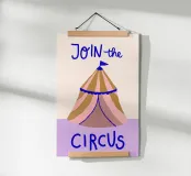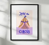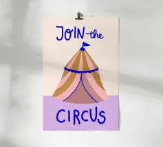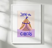 Stampa artistica incorniciata in legno con design moderno e divertente "Join the Circus", ideale per arredare camerette e spazi per bambini. Questo quadro senza possibilità di personalizzazione aggiunge un tocco giocoso e colorato, perfetto come regalo originale per bambini o per nuove case. Realizzato con materiali di alta qualità, rispetta gli standard europei di produzione sostenibile.