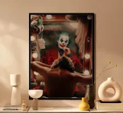 Un uomo a torso nudo siede davanti a uno specchio truccato da clown, che mostra il riflesso di Joker.
