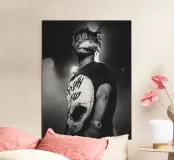 Poster artistico Juice WRLD in stile musica rap hip hop, perfetto per arredare camere da letto, sale musica e ambienti giovani. Stampa di alta qualità su carta opaca resistente, ideale per fan del cantante e dell'estetica urbana e scura.