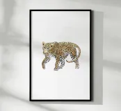 Questo potente acquerello raffigura un elegante leopardo. Con colori vivaci e pennellate fluide, il motivo cattura la grazia selvaggia e la presenza misteriosa di questo abitante della giungla. Un'affascinante attrazione per qualsiasi casa, ideale per chi desidera combinare natura, esotismo e forza animale nel proprio arredamento.