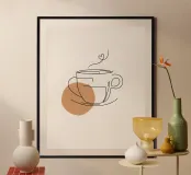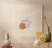 Tazza da caffè composta da linee con un cuore. Sia lo sfondo che la macchia di caffè marrone chiaro. Generato con AI (Canva), tra le altre cose.