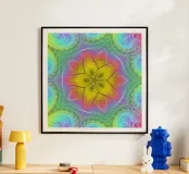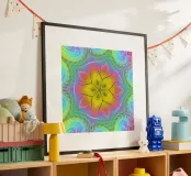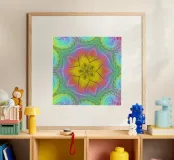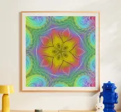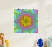 Spettro di colori caleidoscopio, forma di stella con motivo ondulato poster con telaio in legno