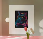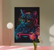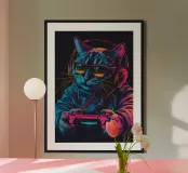 gatto cuffie occhiali da sole felpa gioco-controller video-g poster con telaio in legno