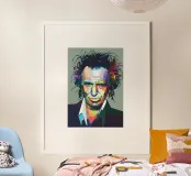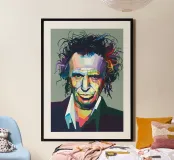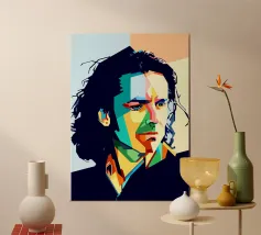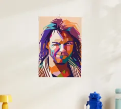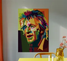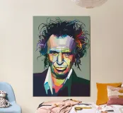 Keef in stile WPAP è un ritratto vibrante e geometrico del leggendario chitarrista dei Rolling Stones. Utilizzando forme audaci e spigolose e una tavolozza di colori sorprendente, l'opera d'arte cattura i suoi lineamenti robusti, la sua espressione iconica e la sua personalità rock 'n' roll. La tecnica WPAP (Wedha's Pop Art Portrait) enfatizza i contrasti netti e la composizione dinamica, riflettendo il suo spirito energico e ribelle.
