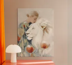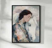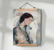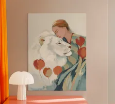 Scopri la stampa artistica "Kindred Spirits" di softsoul, un'opera affascinante che celebra il legame tra umani e animali. Perfetta per valorizzare ogni spazio, questa stampa incorniciata in legno si adatta magnificamente a soggiorni, camere da letto o studi. Aggiungi un tocco di eleganza e serenità alla tua casa con questo pezzo artistico unico.