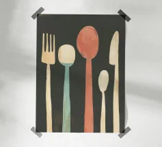 Poster minimalista con spaghetti sulla forchetta - Arte in cucina italiana