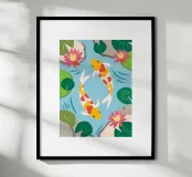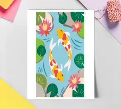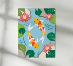 This charming Koi illustration symbolizes peace, luck and harmony.