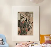 Kunisada - Courtesans, Their Servants and Students Playing Blind Man's Buff poster con telaio in alluminio
