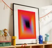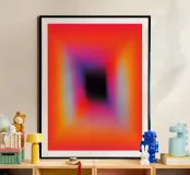Questa ipnotica composizione di campi di colore celebra la purezza dell'arte astratta. Ispirata alla filosofia spirituale dei colori di Rothko e al movimento Op Art, il nero centrale crea un'attrazione meditativa. I toni caldi del rosso-arancio contrastano con le sfumature fredde del viola e creano profondità visiva. L'opera invita alla contemplazione e trasforma qualsiasi stanza in una galleria moderna. Perfetto per gli amanti del minimalismo e per chiunque apprezzi l'estetica dell'arte contemporanea.
