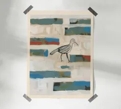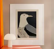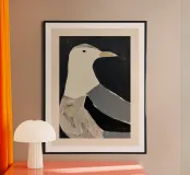 A calm bird artwork with soft tones and a quiet, modern presence.