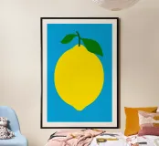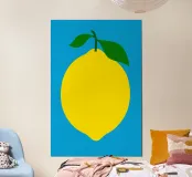 Un poster minimalista sul limone dal sapore mediterraneo: il frutto giallo brillante su foglie blu e verdi appare fresco, moderno e tonificante. Questa grafica porta colore e buon umore in cucina, in sala da pranzo o nella casa estiva. Ideale per gli amanti delle forme chiare, del design italiano e dell'umore solare.