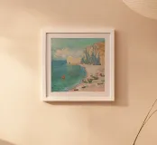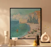 La spiaggia e la Falaise d'Amont (1885) di Claude Monet - Stampa d'arte del paesaggio marino francese, dipinto impressionista di scogliera e oceano, decorazione murale da museo Portate la serena bellezza della costa normanna nel vostro spazio con La spiaggia e la Falaise d'Amont (1885) di Claude Monet. Questo splendido dipinto impressionista cattura le iconiche scogliere bianche di Étretat, immerse nella luce naturale e nelle morbide sfumature dell'oceano. Rappresentazione senza tempo del fascino di Monet per il mare e l'atmosfera, questo pezzo aggiunge fascino costiero ed eleganza artistica a qualsiasi stanza. Ideale per gli amanti dei paesaggi marini francesi, Impr