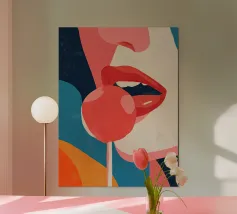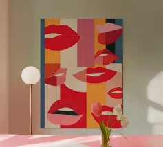 Illustrazione allegra con labbra sorridenti e cuori colorati, che irradiano uno spirito di amore, affetto e felicità.