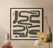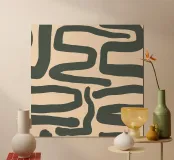 Disegno astratto a labirinto dipinto a mano nei toni del verde intenso con una texture a griglia retrò. Perfetto per un arredamento moderno di metà secolo.