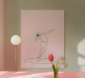 Line art minimalista di un atleta che lancia una palla, catturando potenza, movimento e precisione. Perfetto per gli amanti dello sport e per le decorazioni ispirate all'azione dinamica.