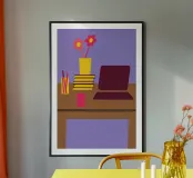 L'equilibrio perfetto tra lavoro e bellezza! Questo disegno presenta un computer portatile e un elegante vaso di fiori, a simboleggiare l'armonia tra produttività e bellezza naturale.