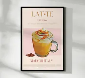 Su uno sfondo neutro color crema, questa elegante illustrazione del famoso caffè macchiato italiano aggiunge raffinatezza a qualsiasi cucina, bar o zona pranzo. Questo design minimalista ma informativo accenderà la conversazione in qualsiasi ambiente, aggiungendo un tocco raffinato al vostro ambiente.